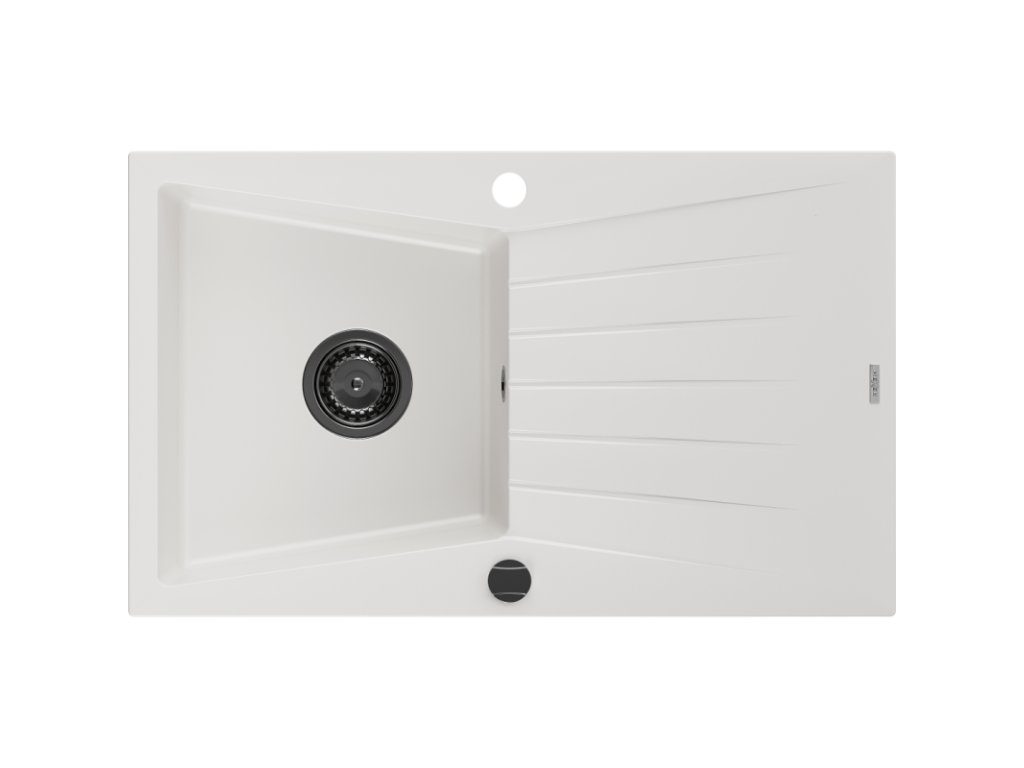 Granitový drez Mexen Cesar s 1 misou a odkapávačom 775 x 470 mm, biely, čierny sifón - 6514771010-20-B