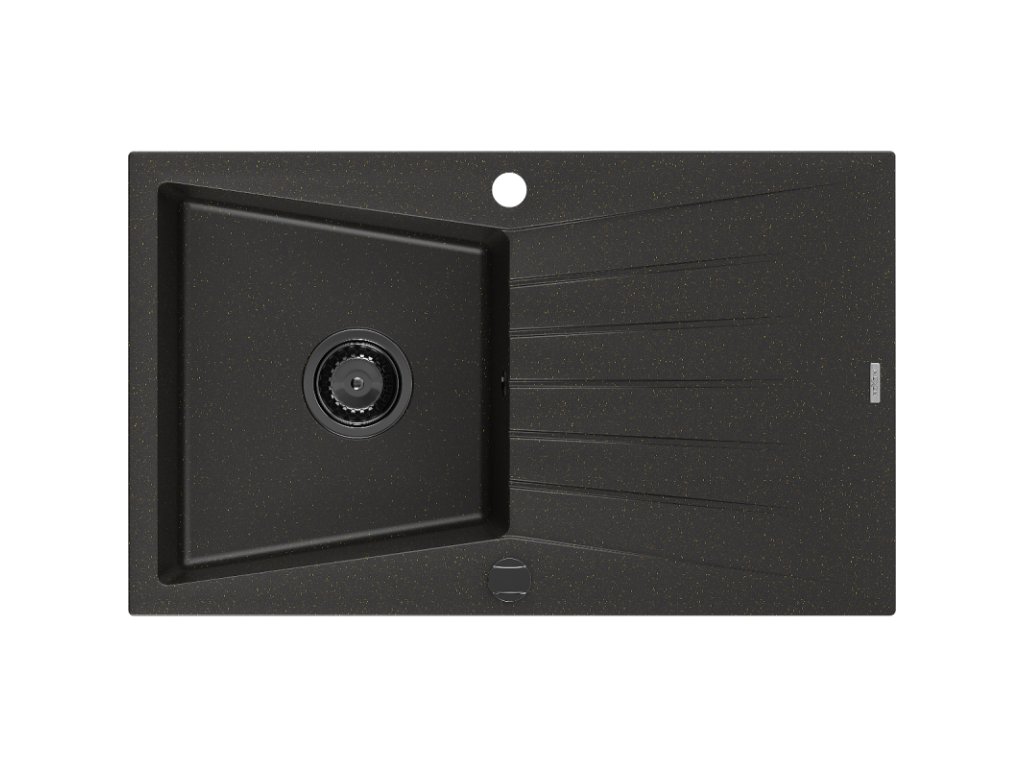Granitový drez Mexen Cesar s 1 misou a odkapávačom 775 x 470 mm, čierna/zlatá metalíza, čierny sifón - 6514771010-75-B