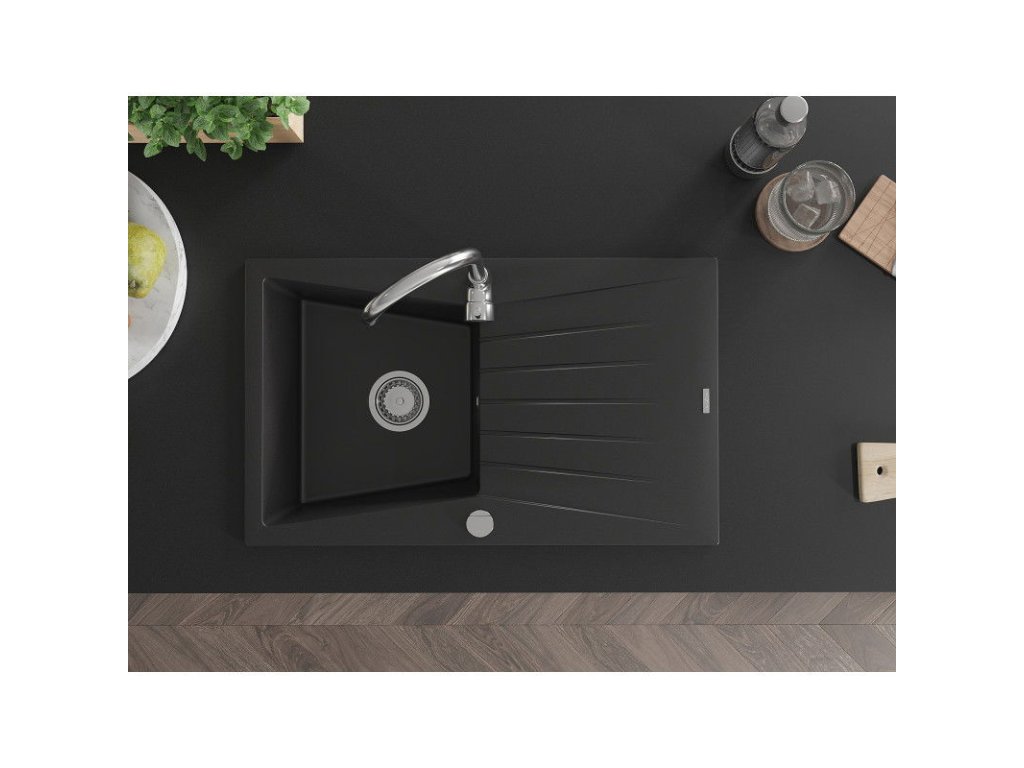 Granitový drez Mexen Cesar s 1 misou a odkapávačom 775 x 470 mm, čierny, chrómový sifón - 6514771010-77
