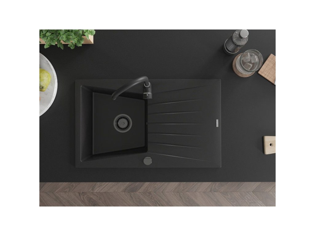 Granitový drez Mexen Cesar s 1 misou a odkapávačom 775 x 470 mm, čierny, čierny sifón - 6514771010-77-B