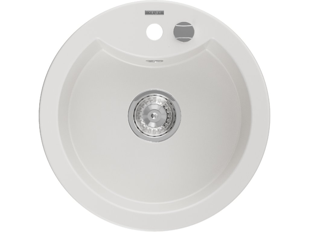 Granitový drez Mexen Diego s 1 misou 488 x 480 mm, biely, chrómový sifón - 6512481000-20