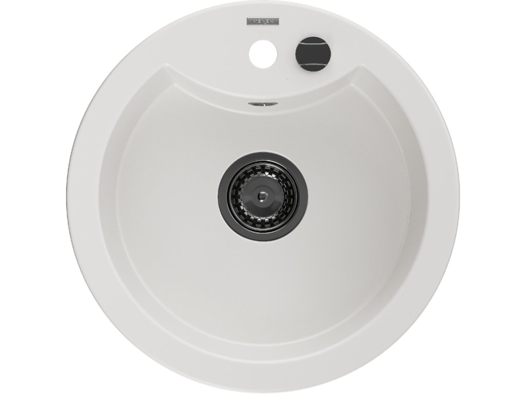 Granitový drez Mexen Diego s 1 misou 488 x 480 mm, biely, čierny sifón - 6512481000-20-B