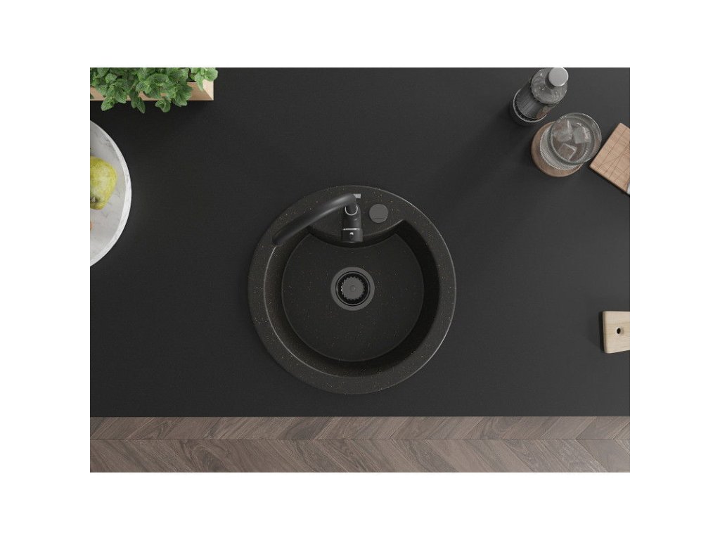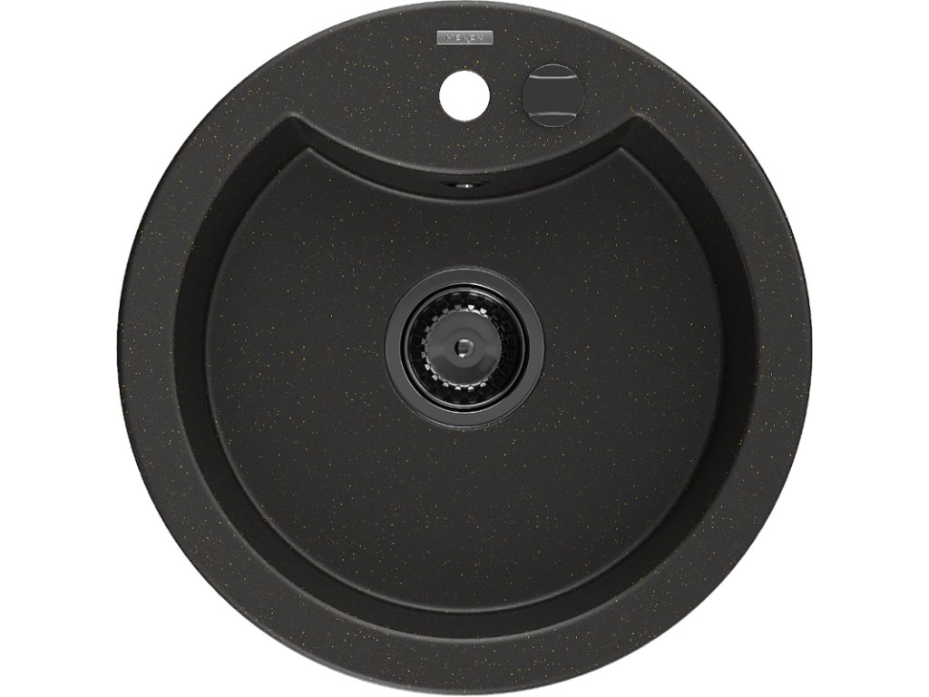 Granitový drez Mexen Diego s 1 misou 488 x 480 mm, čierna/zlatá metalíza, čierny sifón - 6512481000-75-B