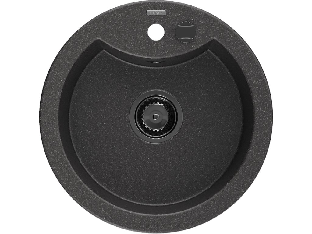 Granitový drez Mexen Diego s 1 misou 488 x 480 mm, čierny bodkovaný, čierny sifón - 6512481000-76-B