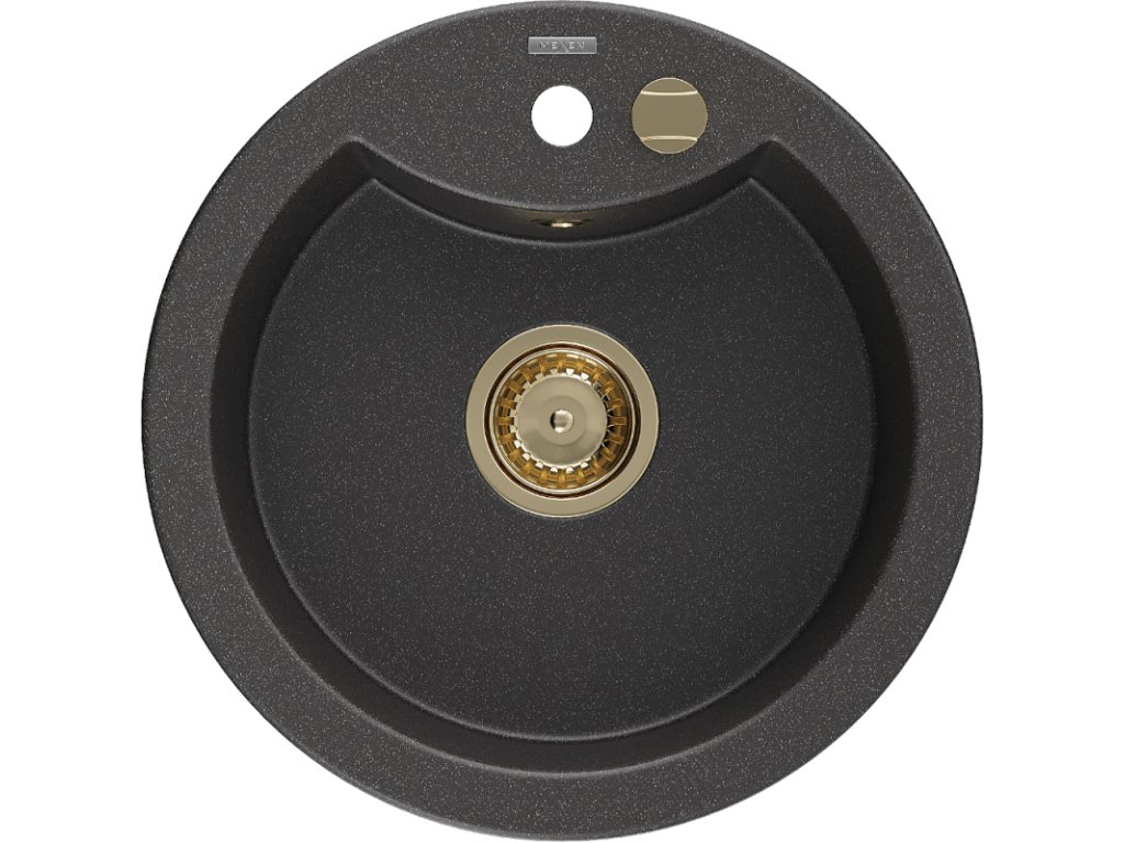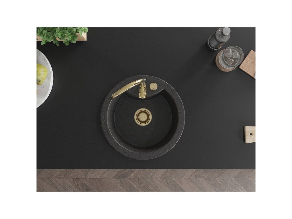 Granitový drez Mexen Diego s 1 misou 488 x 480 mm, čierny bodkovaný, zlatý sifón - 6512481000-76-G