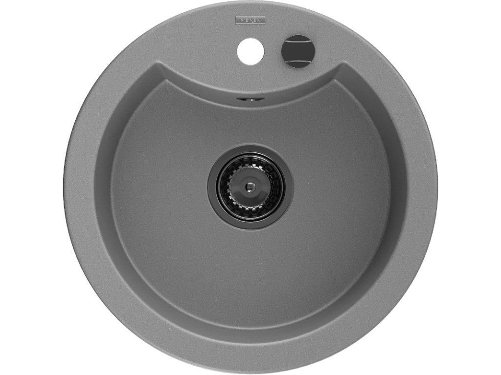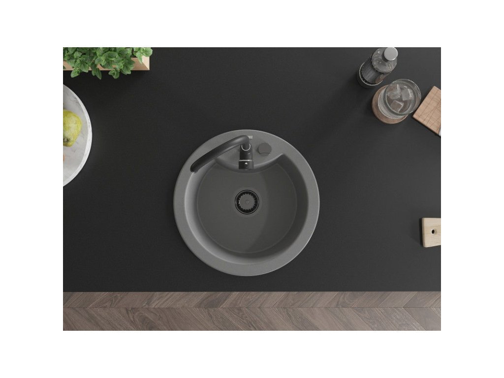 Granitový drez Mexen Diego s 1 misou 488 x 480 mm, sivý, čierny sifón - 6512481000-71-B