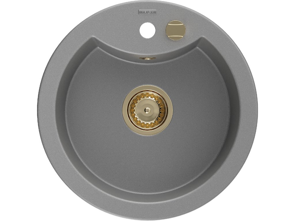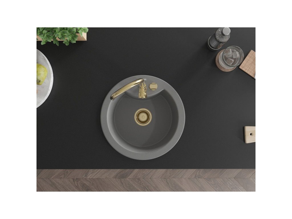 Granitový drez Mexen Diego s 1 misou 488 x 480 mm, sivý, zlatý sifón - 6512481000-71-G
