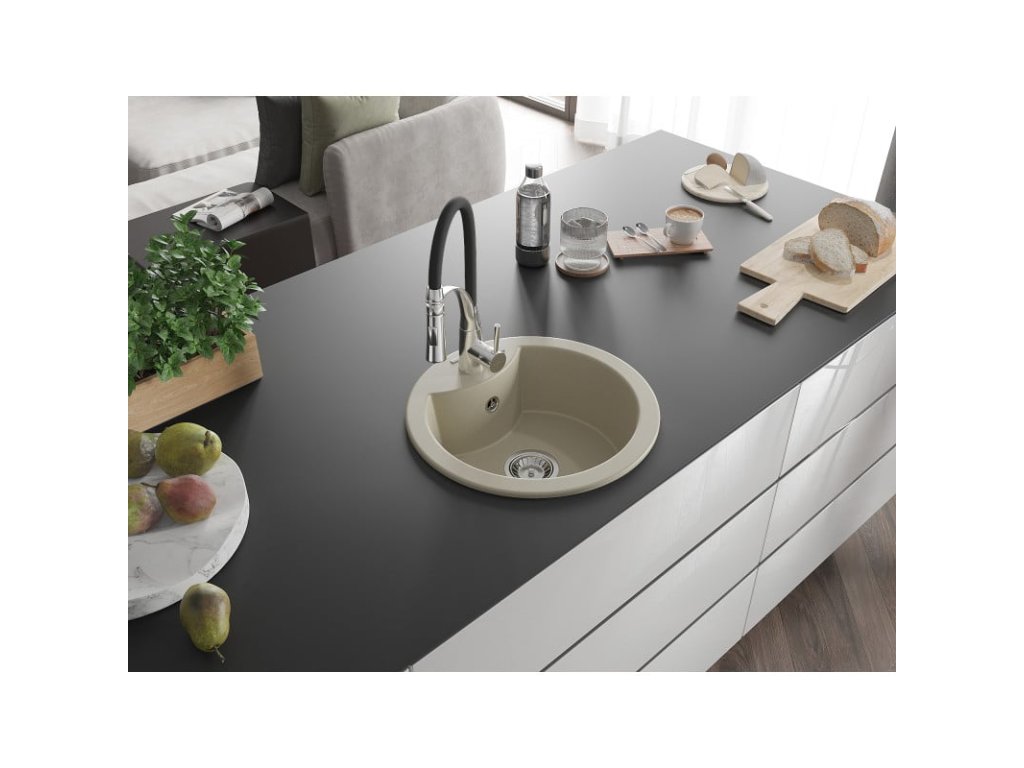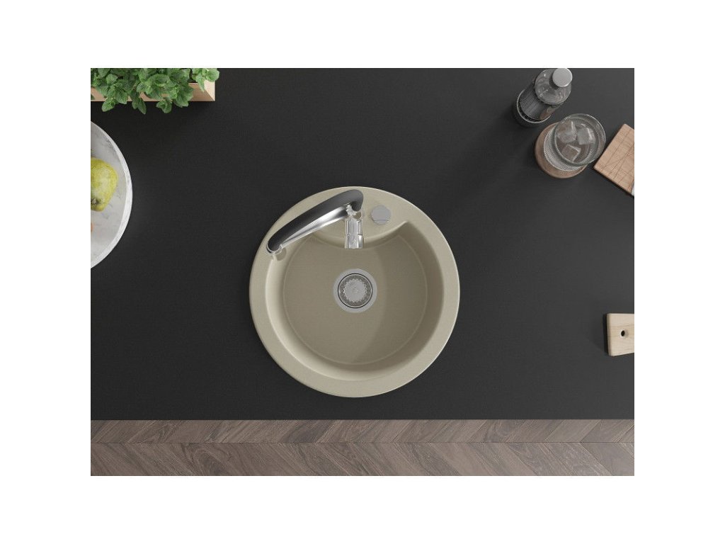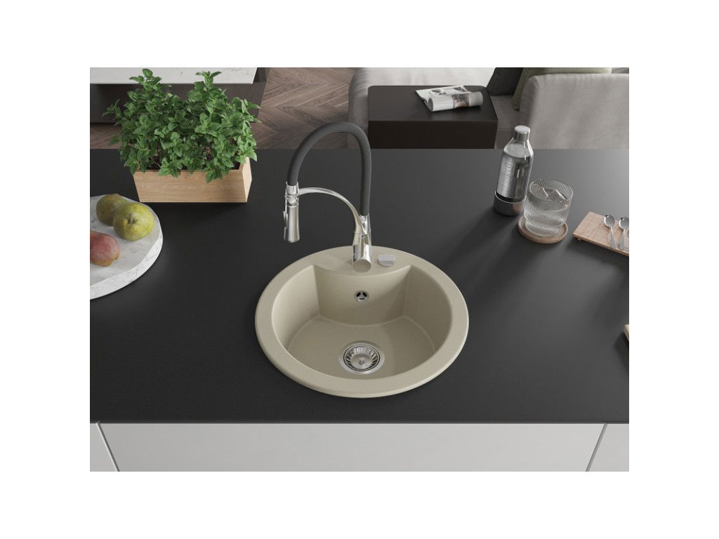 Granitový drez Mexen Diego s 1 misou a kuchynskou batériou Aster, béžový - 6512-69-73450-07