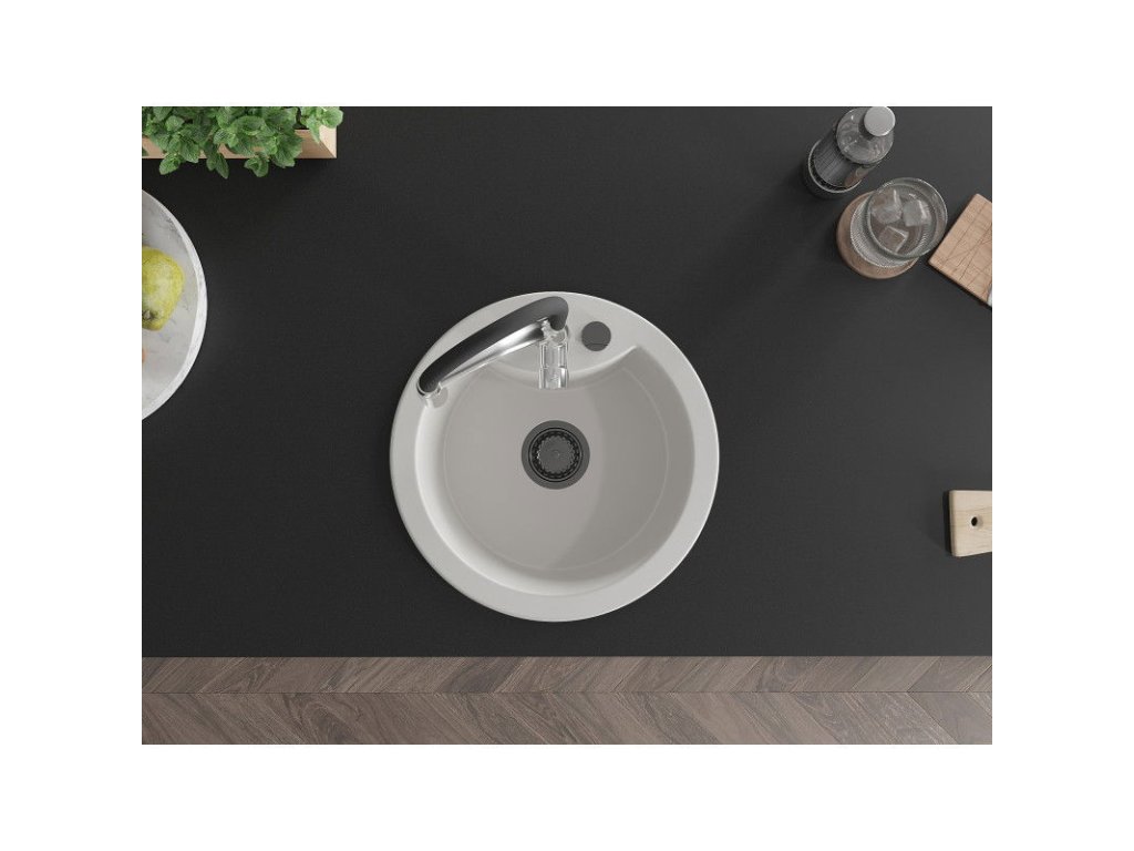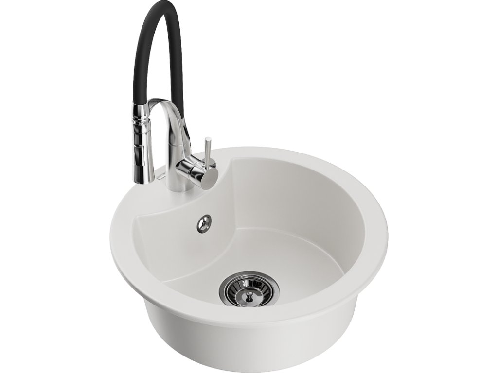 Granitový drez Mexen Diego s 1 misou a kuchynskou batériou Aster, biely - 6512-20-73450-07-B