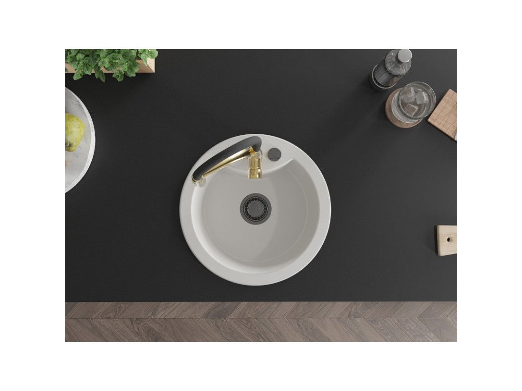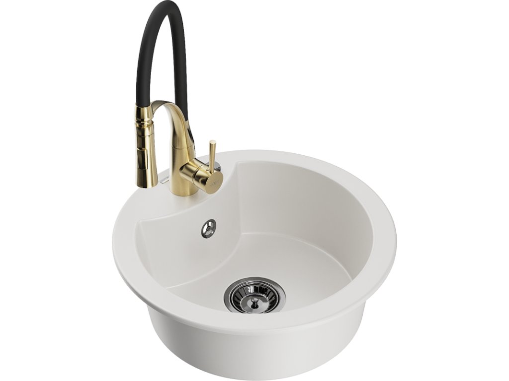 Granitový drez Mexen Diego s 1 misou a kuchynskou batériou Aster, biely - 6512-20-73450-57-B