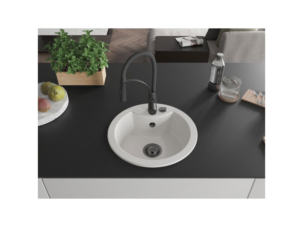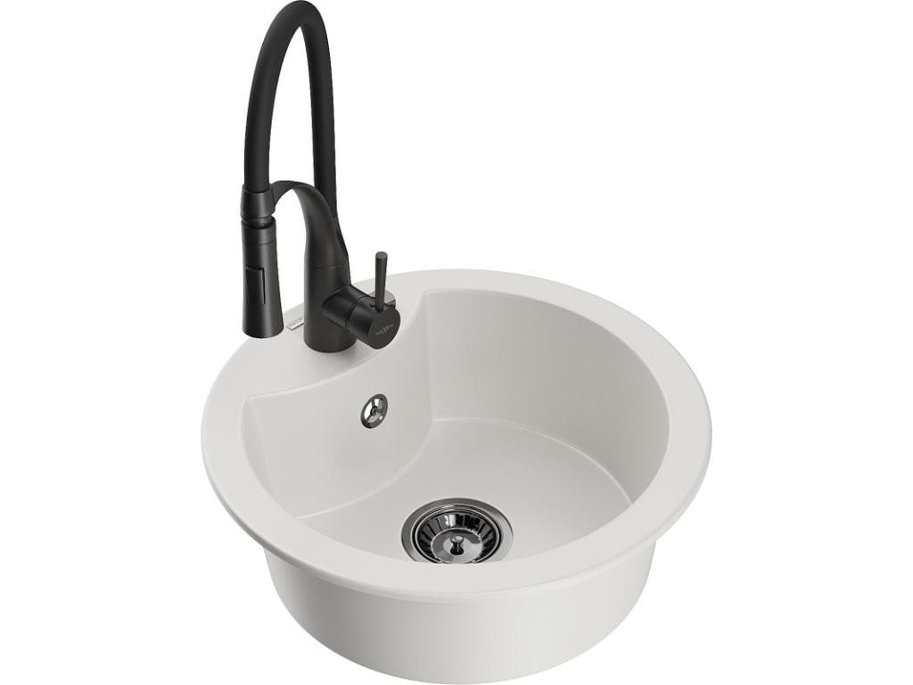 Granitový drez Mexen Diego s 1 misou a kuchynskou batériou Aster, biely - 6512-20-73450-70-B