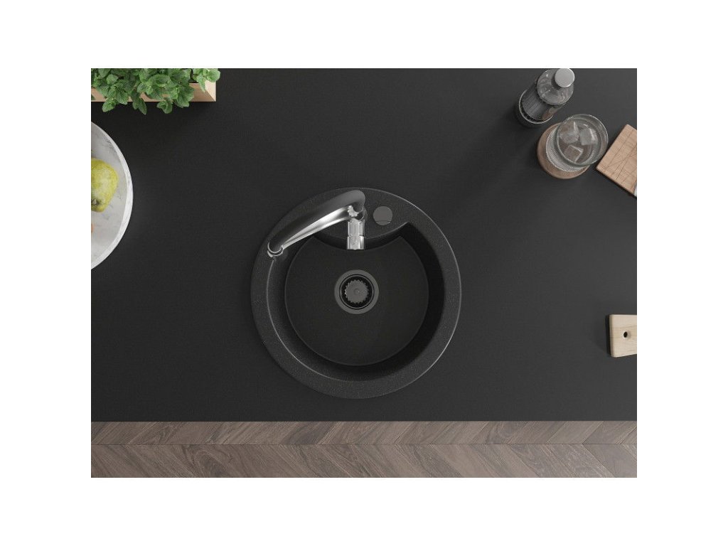 Granitový drez Mexen Diego s 1 misou a kuchynskou batériou Aster, čierna/strieborná metalíza - 6512-73-73450-07-B