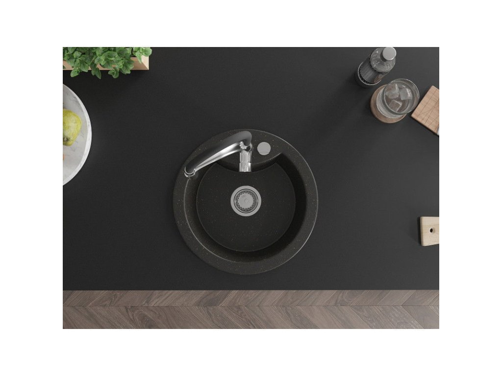 Granitový drez Mexen Diego s 1 misou a kuchynskou batériou Aster, čierna/zlatá metalíza - 6512-75-73450-70