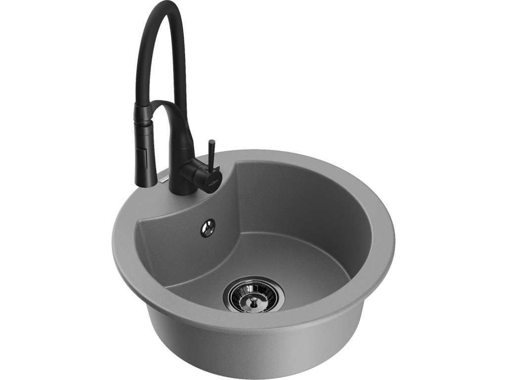 Granitový drez Mexen Diego s 1 misou a kuchynskou batériou Aster, sivý - 6512-71-73450-70-B