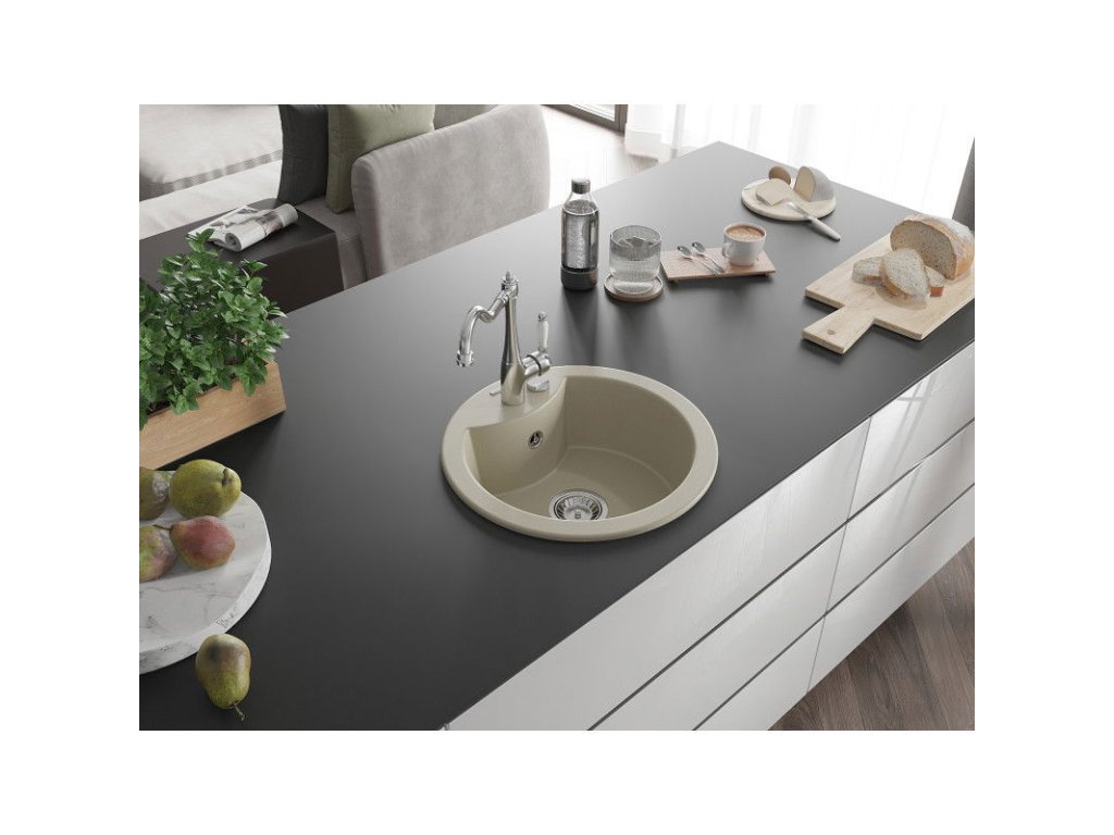 Granitový drez Mexen Diego s 1 misou a kuchynskou batériou Carla, béžový - 6512-69-670700-00