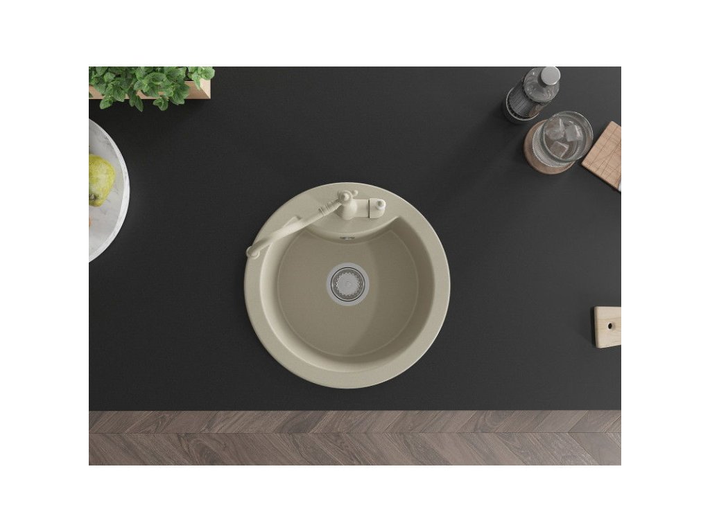 Granitový drez Mexen Diego s 1 misou a kuchynskou batériou Carla, béžový - 6512-69-670700-69
