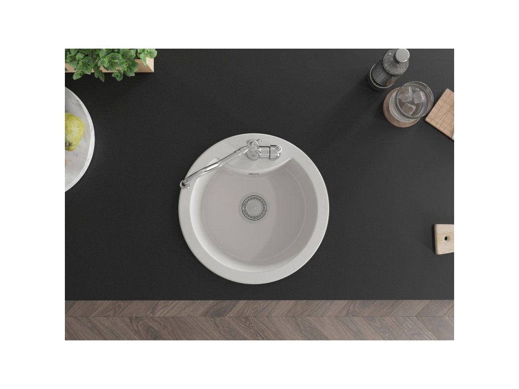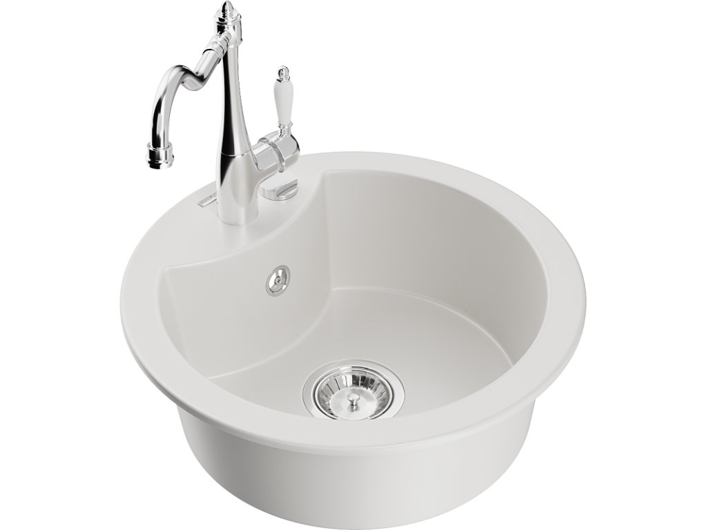 Granitový drez Mexen Diego s 1 misou a kuchynskou batériou Carla, biely - 6512-20-670700-00