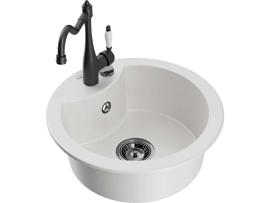 Granitový drez Mexen Diego s 1 misou a kuchynskou batériou Carla, biely - 6512-20-670700-70