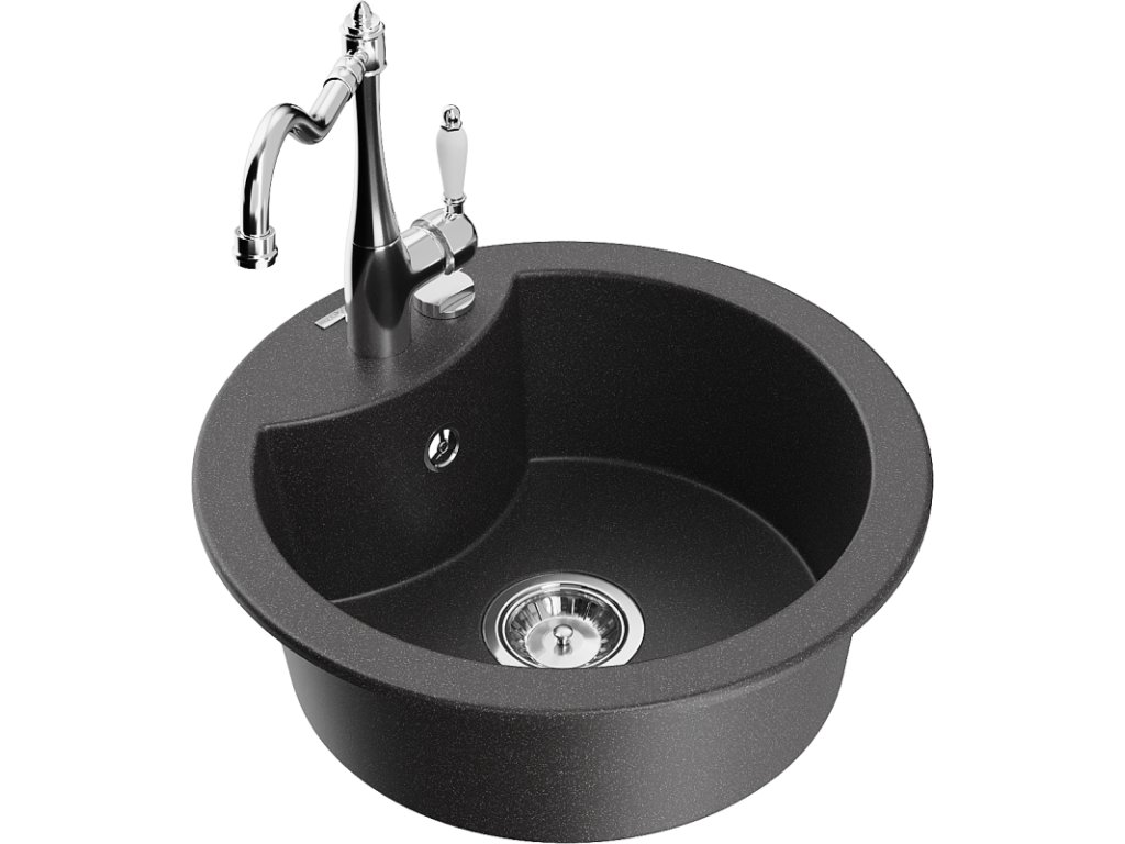 Granitový drez Mexen Diego s 1 misou a kuchynskou batériou Carla, čierna škvrnitá - 6512-76-670700-00