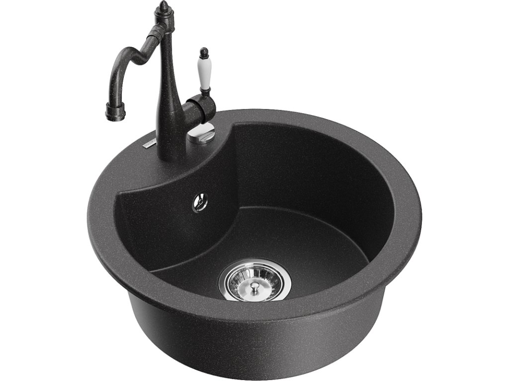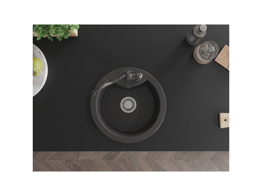 Granitový drez Mexen Diego s 1 misou a kuchynskou batériou Carla, čierna škvrnitá - 6512-76-670700-76