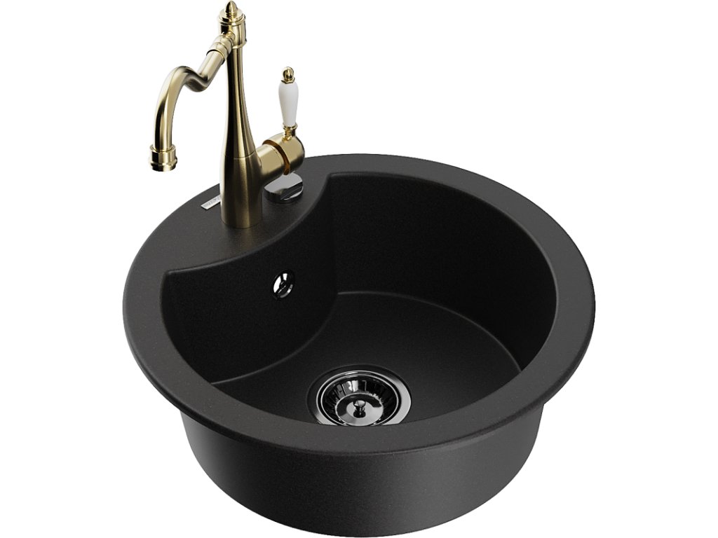 Granitový drez Mexen Diego s 1 misou a kuchynskou batériou Carla, čierny - 6512-77-670700-50-B
