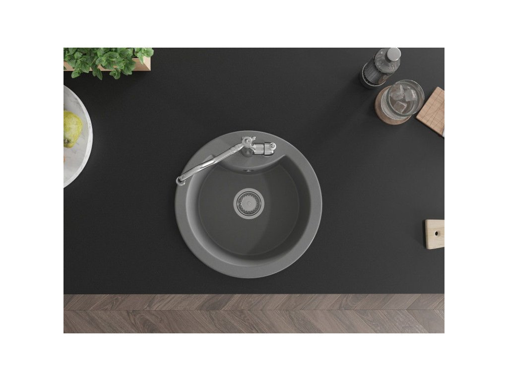 Granitový drez Mexen Diego s 1 misou a kuchynskou batériou Carla, sivý - 6512-71-670700-00