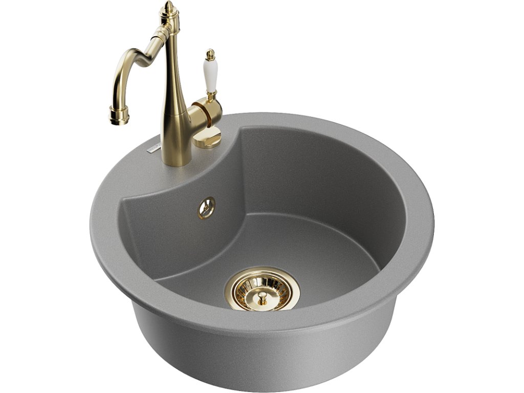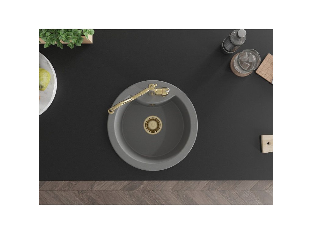 Granitový drez Mexen Diego s 1 misou a kuchynskou batériou Carla, sivý - 6512-71-670700-50