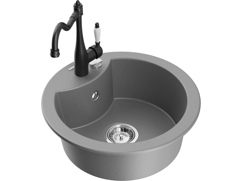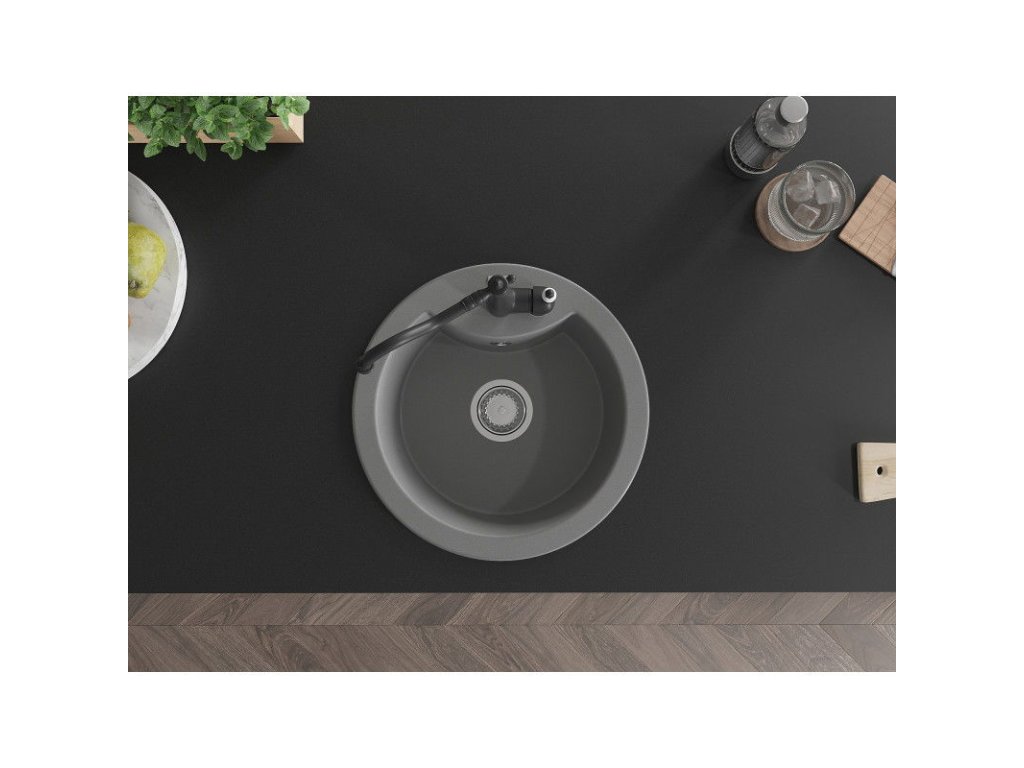 Granitový drez Mexen Diego s 1 misou a kuchynskou batériou Carla, sivý - 6512-71-670700-70