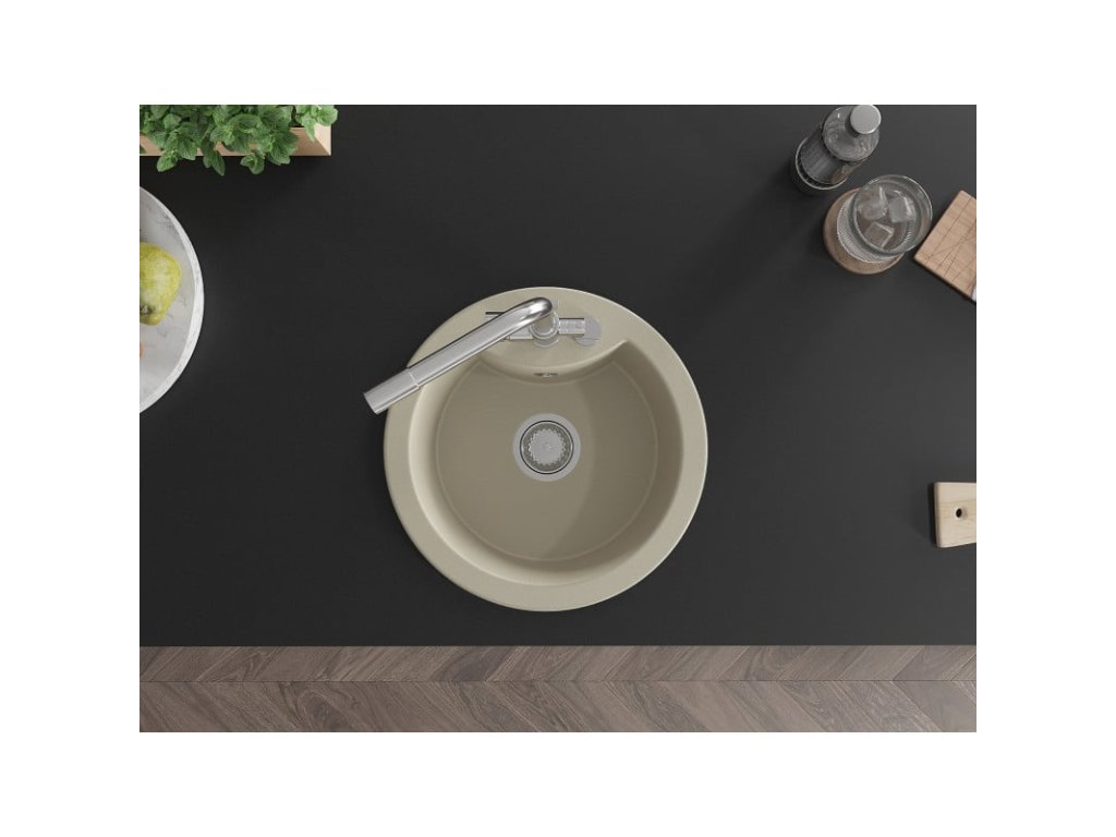 Granitový drez Mexen Diego s 1 misou a kuchynskou batériou Duero, béžový - 6512-69-671600-00