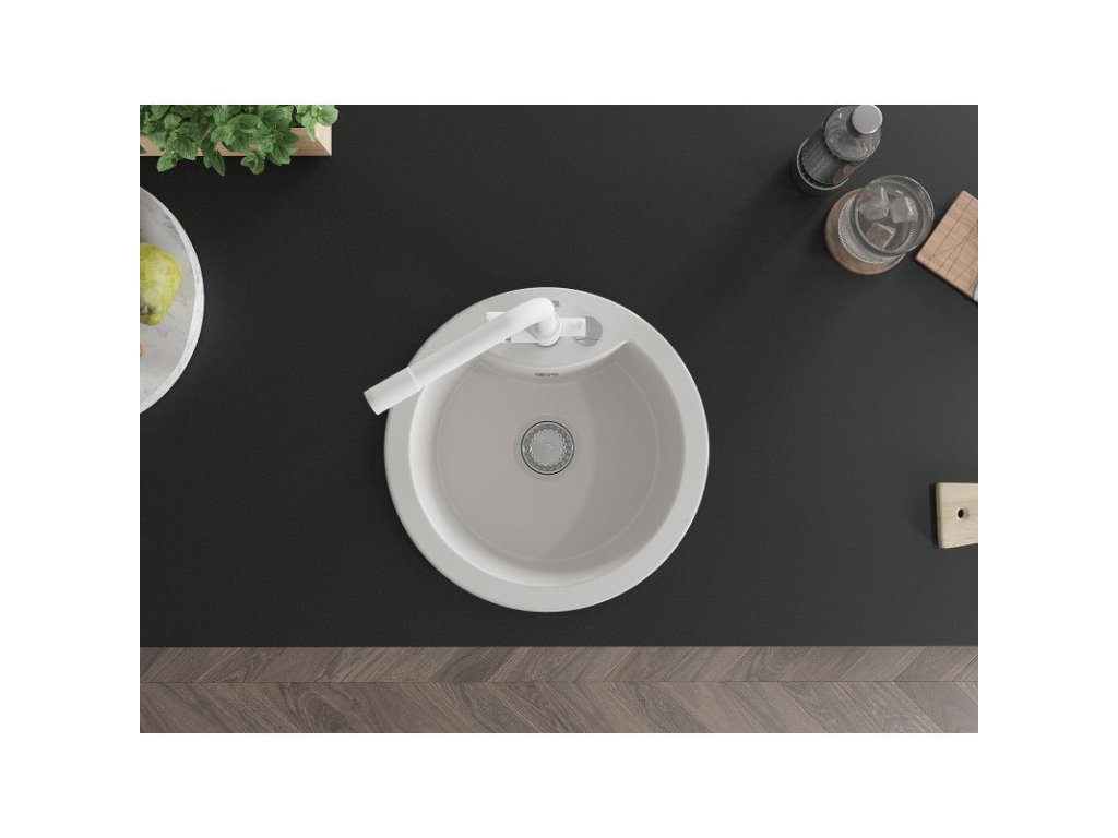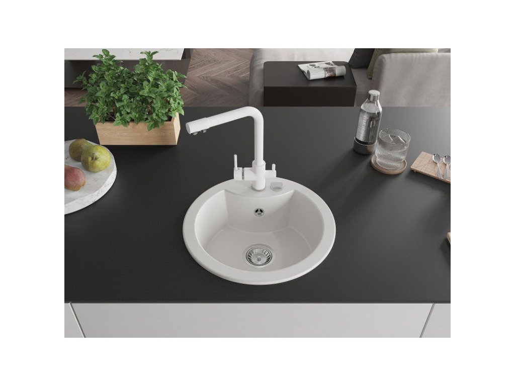 Granitový drez Mexen Diego s 1 misou a kuchynskou batériou Duero, biely - 6512-20-671600-20