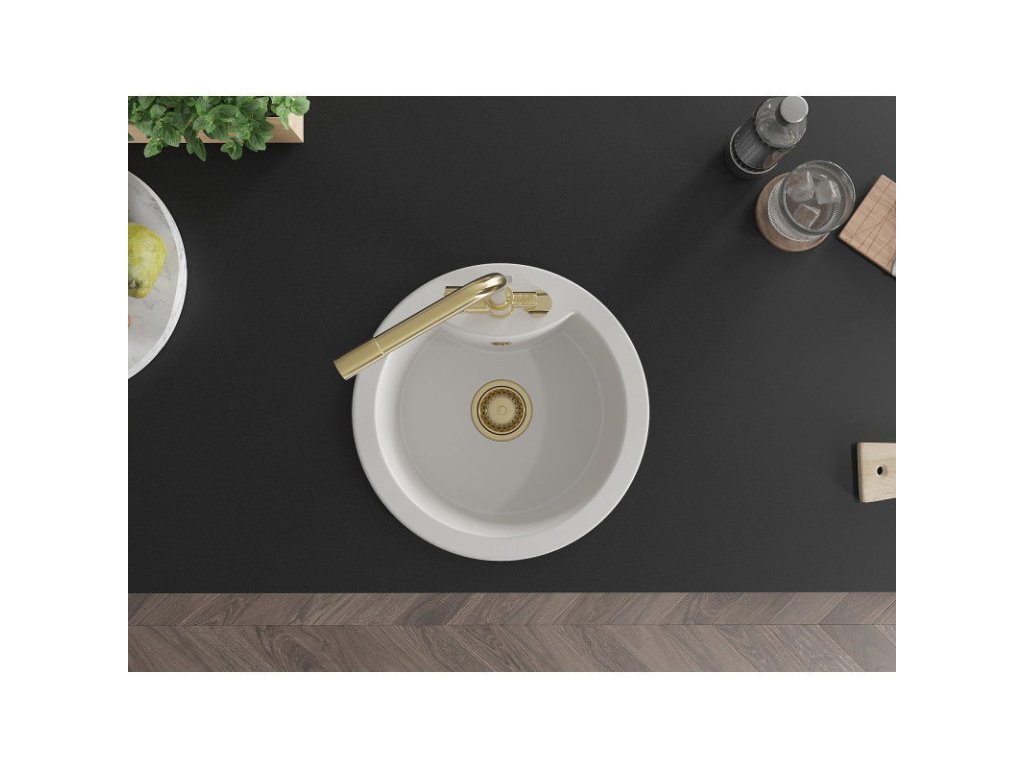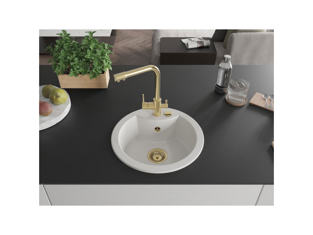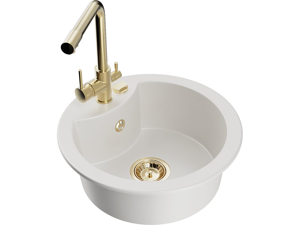 Granitový drez Mexen Diego s 1 misou a kuchynskou batériou Duero, biely - 6512-20-671600-50