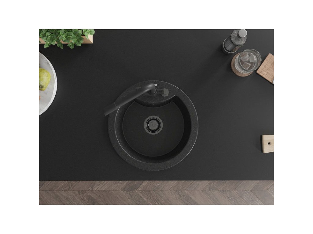 Granitový drez Mexen Diego s 1 misou a kuchynskou batériou Duero, čierna/strieborná metalíza - 6512-73-671600-70-B