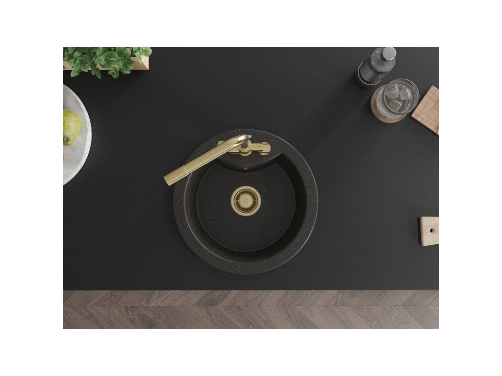 Granitový drez Mexen Diego s 1 misou a kuchynskou batériou Duero, čierna/zlatá metalíza - 6512-75-671600-50