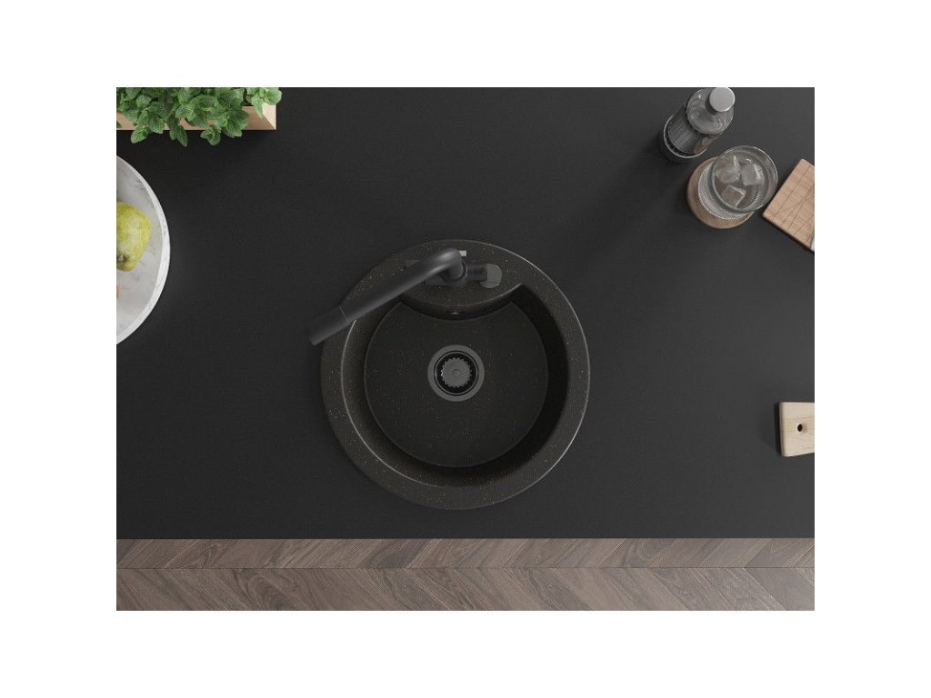 Granitový drez Mexen Diego s 1 misou a kuchynskou batériou Duero, čierna/zlatá metalíza - 6512-75-671600-70-B