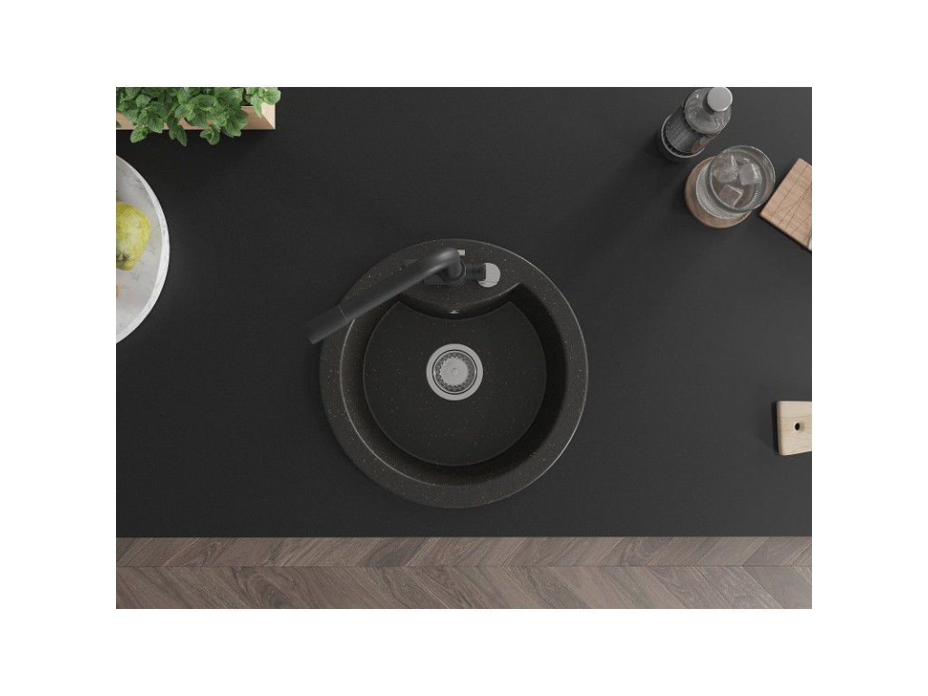 Granitový drez Mexen Diego s 1 misou a kuchynskou batériou Duero, čierna/zlatá metalíza - 6512-75-671600-70