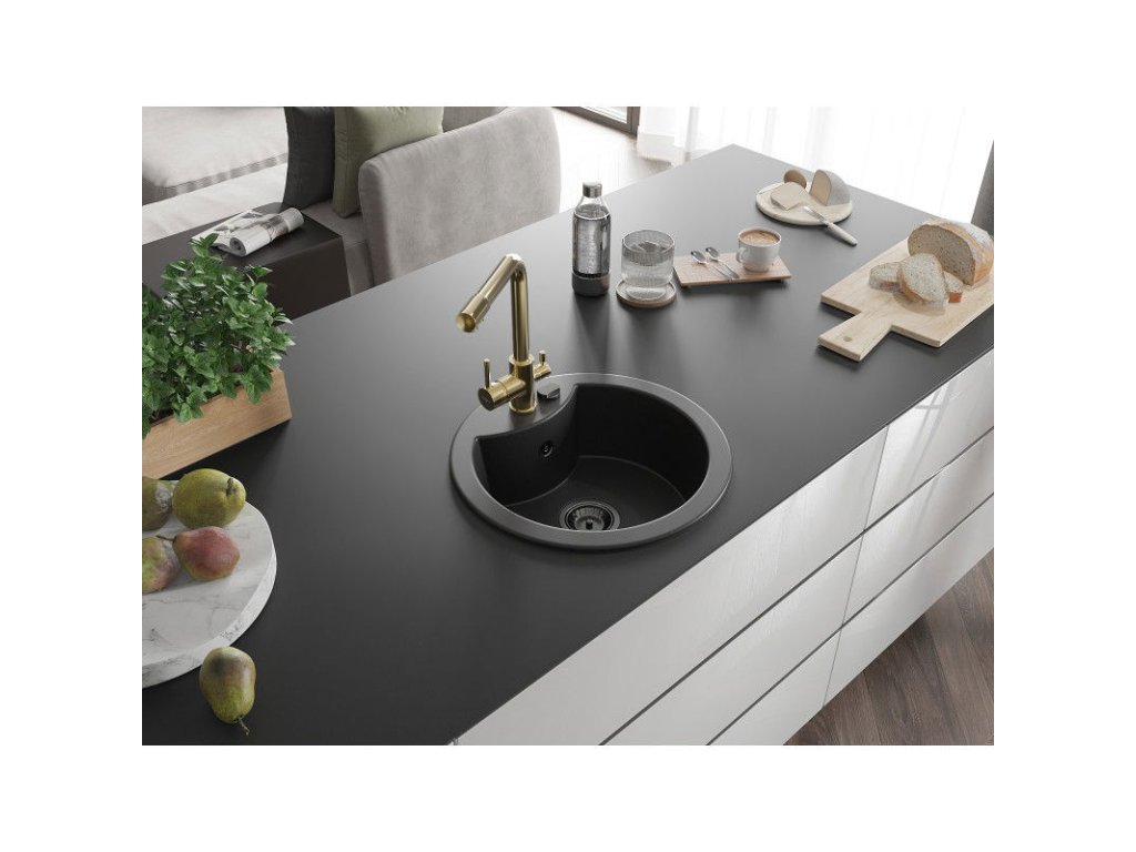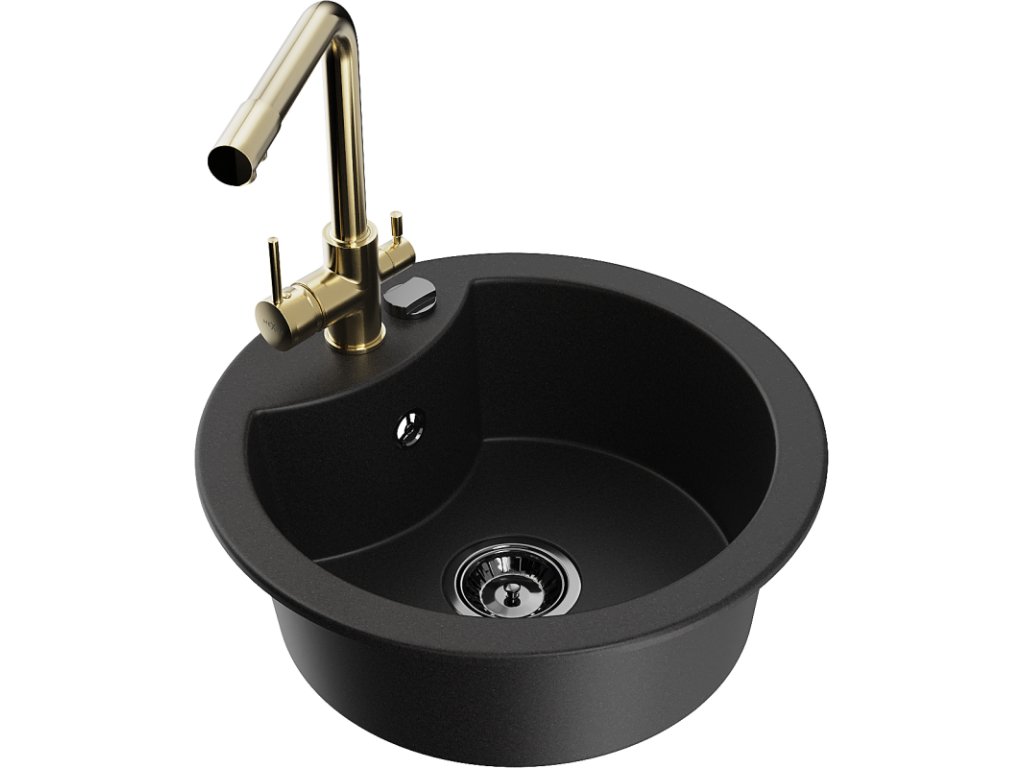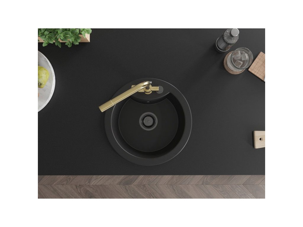 Granitový drez Mexen Diego s 1 misou a kuchynskou batériou Duero, čierny - 6512-77-671600-50-B