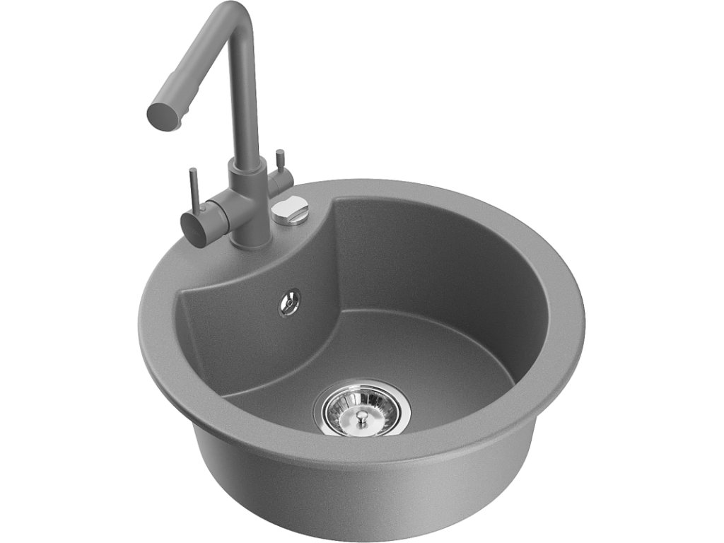 Granitový drez Mexen Diego s 1 misou a kuchynskou batériou Duero, sivý - 6512-71-671600-71