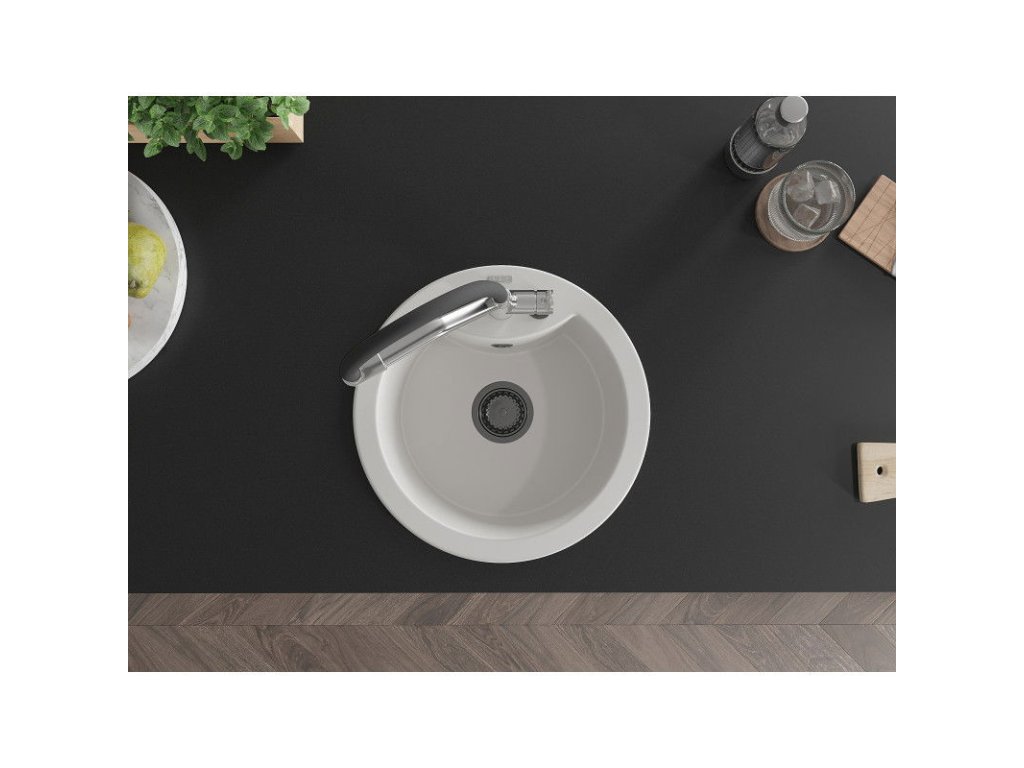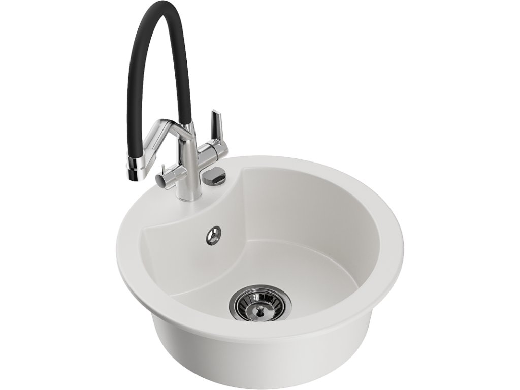 Granitový drez Mexen Diego s 1 misou a kuchynskou batériou Duo, biely - 6512-20-671701-07-B