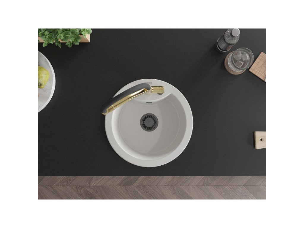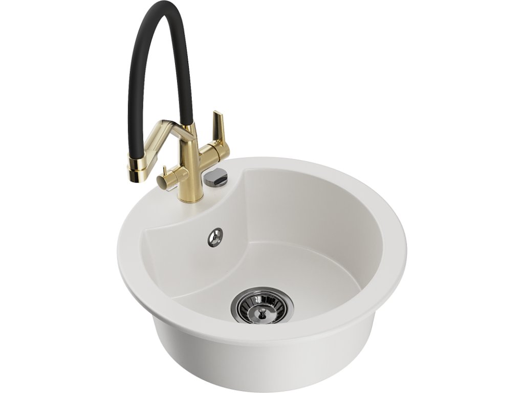 Granitový drez Mexen Diego s 1 misou a kuchynskou batériou Duo, biely - 6512-20-671701-57-B