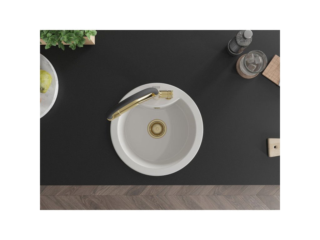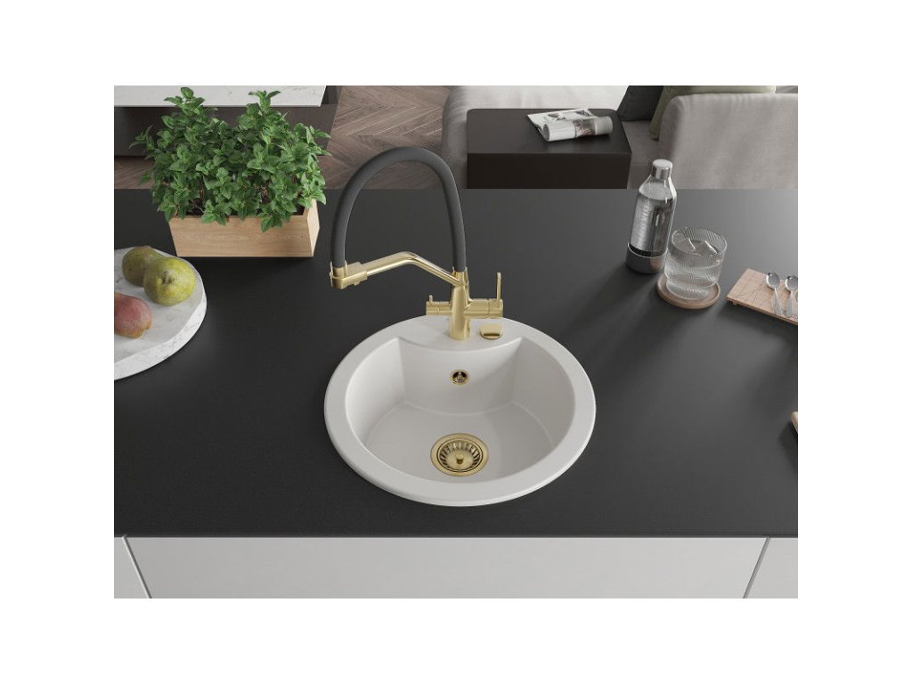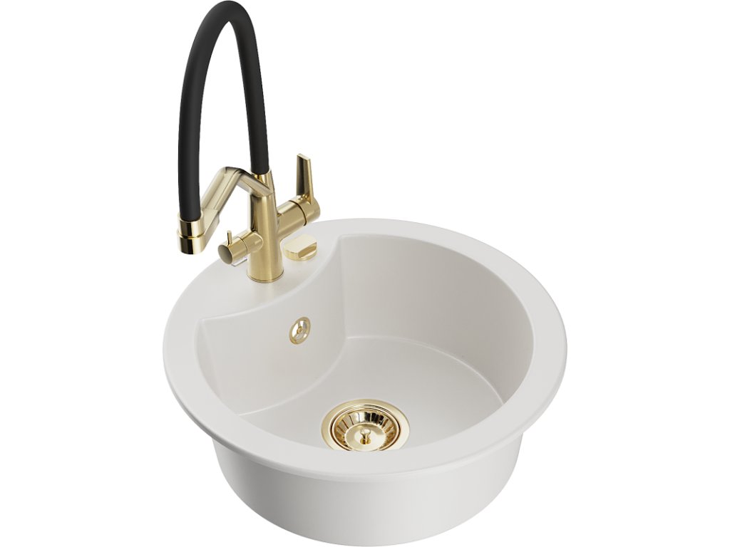 Granitový drez Mexen Diego s 1 misou a kuchynskou batériou Duo, biely - 6512-20-671701-57-G