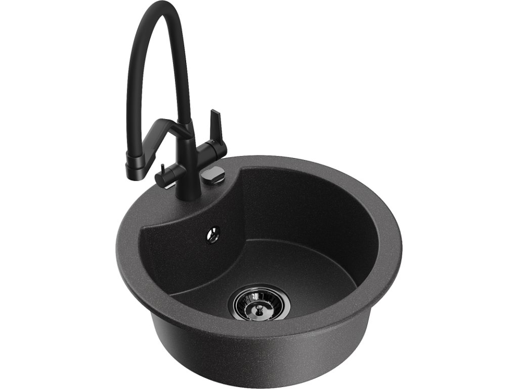 Granitový drez Mexen Diego s 1 misou a kuchynskou batériou Duo, čierna škvrna - 6512-76-671701-70-B