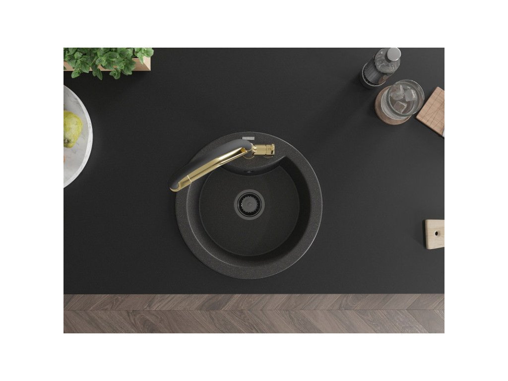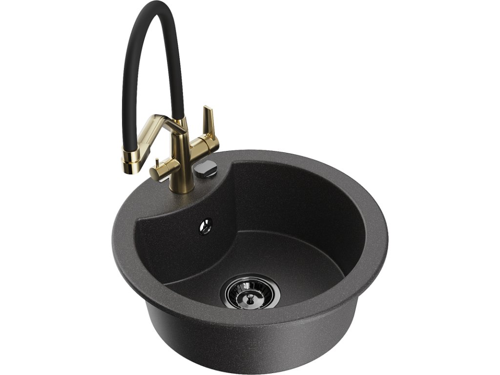 Granitový drez Mexen Diego s 1 misou a kuchynskou batériou Duo, čierna škvrnitá - 6512-76-671701-57-B