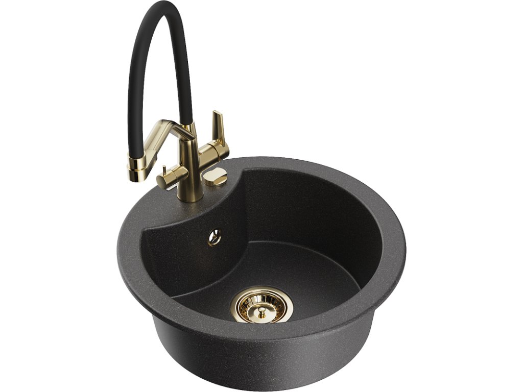 Granitový drez Mexen Diego s 1 misou a kuchynskou batériou Duo, čierna škvrnitá - 6512-76-671701-57-G