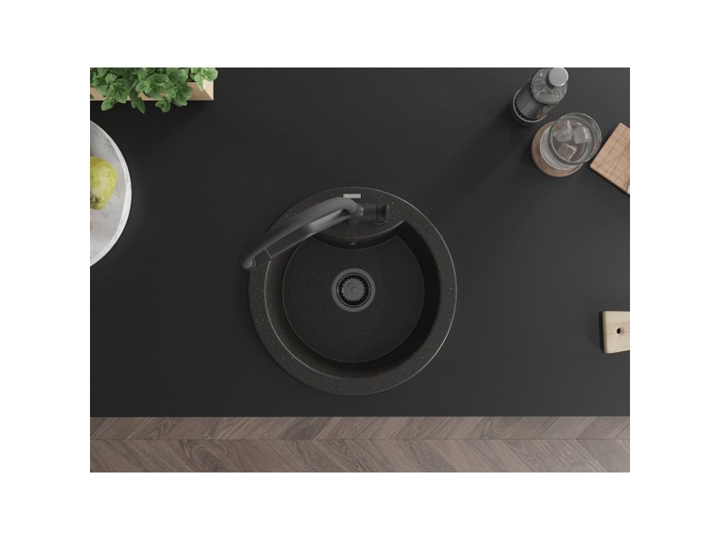 Granitový drez Mexen Diego s 1 misou a kuchynskou batériou Duo, čierna/zlatá metalíza - 6512-75-671701-70-B