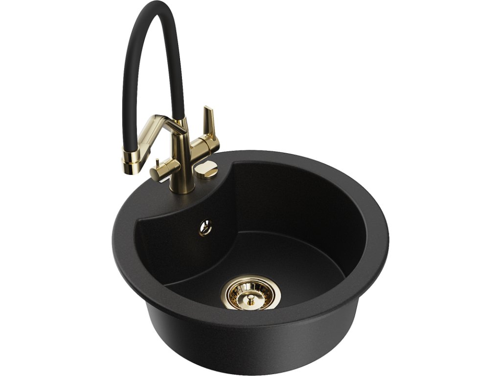 Granitový drez Mexen Diego s 1 misou a kuchynskou batériou Duo, čierny - 6512-77-671701-57-G