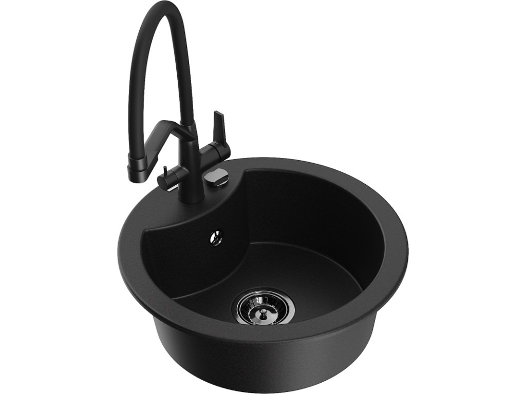 Granitový drez Mexen Diego s 1 misou a kuchynskou batériou Duo, čierny - 6512-77-671701-70-B