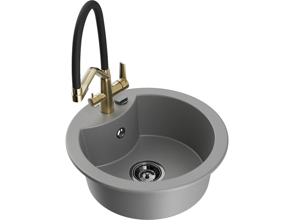 Granitový drez Mexen Diego s 1 misou a kuchynskou batériou Duo, sivý - 6512-71-671701-57-B