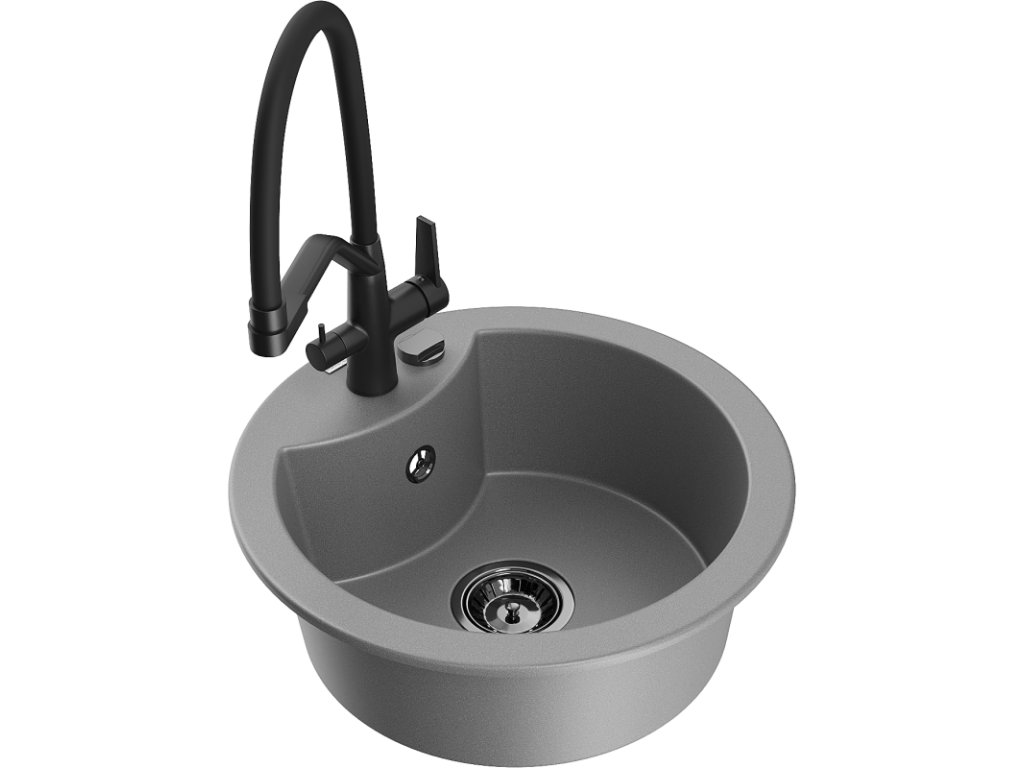 Granitový drez Mexen Diego s 1 misou a kuchynskou batériou Duo, sivý - 6512-71-671701-70-B