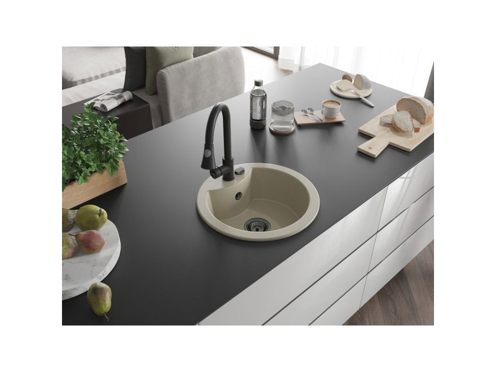 Granitový drez Mexen Diego s 1 misou a kuchynskou batériou Elia, béžový - 6512-69-670101-70