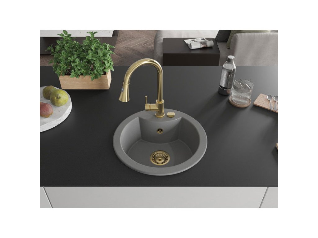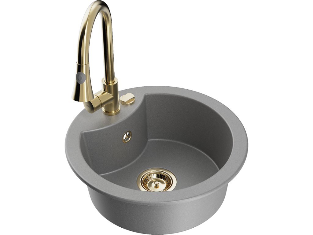 Granitový drez Mexen Diego s 1 misou a kuchynskou batériou Elia, sivý - 6512-71-670101-50